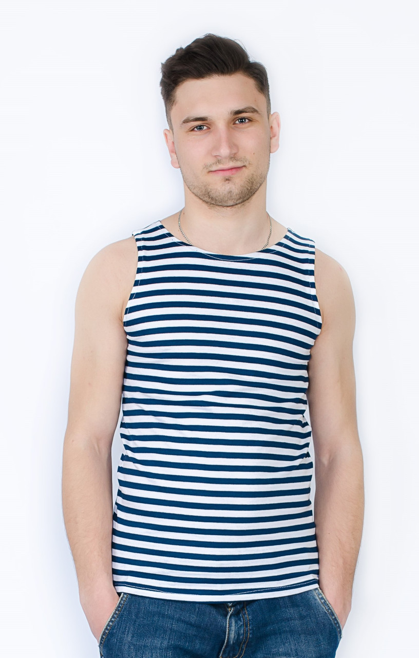 Майка моряка чоловіча з темно-синіми та білими смугами